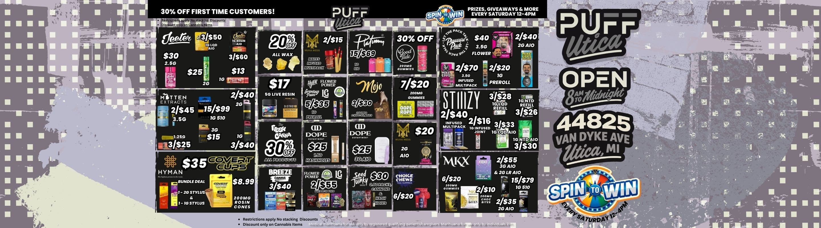 At Puff Cannabis, we’re committed to providing you with the best value for your money. Found a better price elsewhere in Macomb County? No problem! We’ll match any competitor’s price on the same product when you provide a valid receipt. Our price match guarantee ensures that you can shop with confidence, knowing you’re getting top-quality cannabis products at the most competitive prices in Utica, Michigan. Bring in your receipt, and let us take care of the rest. Because at Puff Cannabis, your satisfaction is always our priority!